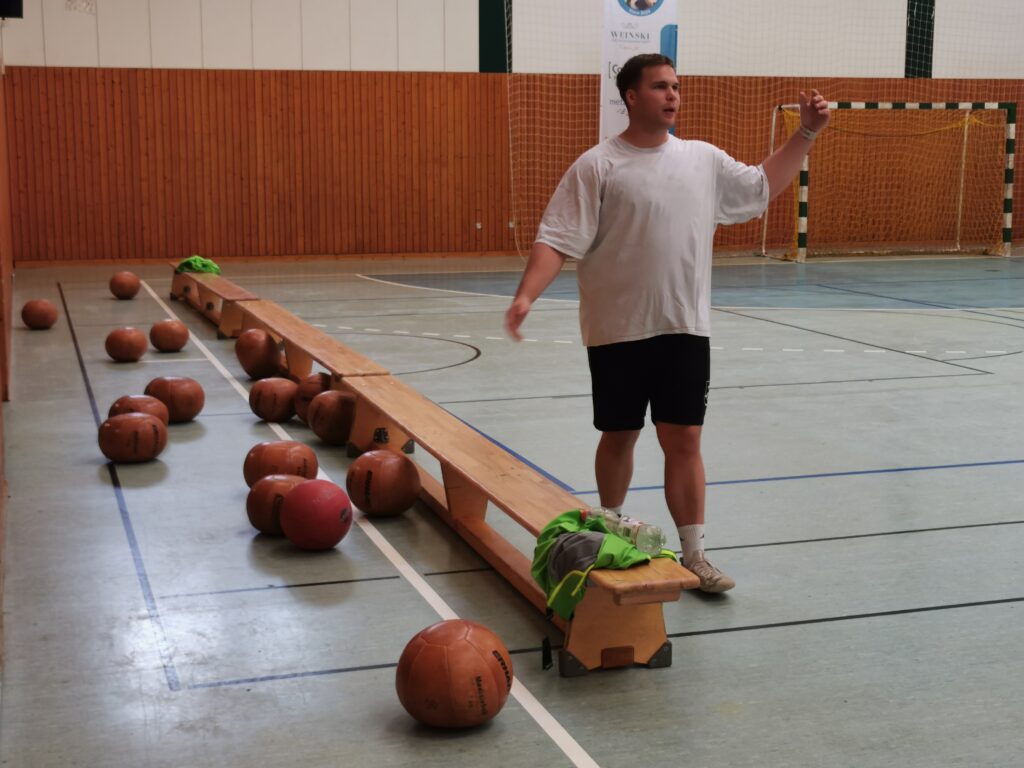 Neu im Team ist auch Mannschafts-Betreuer Sven Behrendt, ehemaliger langjähriger Spieler beim MTV 1860 Altlandsberg. Der 47-Jährige kümmert sich um die organisatorischen Dinge. „Wir kennen uns schon lange. Sven ist jetzt schon eine wichtige Unterstützung im operativen Geschäft“, sagt Tilo Leibrich. Neuer Athletik- und Krafttrainer ist Marc Hiesener. Der 26-Jährige will „im Notfall“ auch noch auf dem Spielfeld zur Verfügung stehen. Auf jeden Fall bringt er seine Mitspieler jetzt schön ins Schwitzen, unter anderem so wie beim Training mit Medizinbällen am vorigen Donnerstag (24.7.). Im August wird es für die Männer des Grünheider SV I noch ein Stück intensiver. Nach dem ersten Testspiel am 7. August folgt gleich nach drei weiteren Übungseinheiten ein Trainingslager in Störitzland und in der Löcknitz-Halle (15.-17.August 2025), unter anderem mit einem Test gegen Oberligist MTV Wünsdorf 1910 am 15. August, ab 19.30 Uhr. Dem sollen sich noch Testspielreisen Ende August anschließen. Das erste Saison-Punktspiel der vierten Liga steht in der heimische Löcknitz-Halle am 13. September 2025, ab 18.30 Uhr, gegen die Spielvereinigung Blau-Weiß 1890 aus Berlin auf dem Programm.