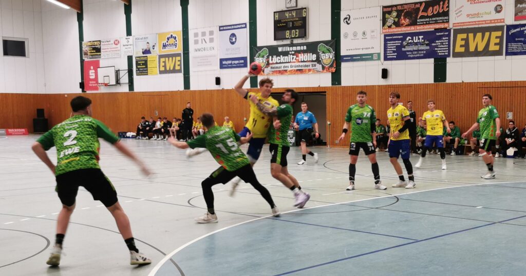 Grünheide (RH). Das Erfolgserlebnis blieb aus: Die Handballer des Grünheider SV haben am vorigen Samstag, 1. November 2025, ihr Heimspiel in der Regionalliga Ostsee-Spree gegen den HC Empor Rostock II mit 29:34 (12:19) verloren. Trotz einer Steigerung in der zweiten Halbzeit, die die Grünheider 17:15 für sich entschieden, reichte es nicht zum Punktgewinn – wie schon eine Woche zuvor bei der SG OSF Berlin in Schöneberg (27:36 am 25. Oktober). Das Team um Chefcoach Tilo Leibrich ist mit 2:12 Punkten Letzter in der 14 Mannschaften umfassenden vierten Liga, der Rostocker Handball-Nachwuchs (3:11 Zähler) kletterte auf Rang elf. Erfolgreichste Grünheider Werfer vor und 150 Zuschauern in der Löcknitz-Halle waren Florian Folger mit acht Toren, darunter zwei verwandelte Siebenmeter, und Max Mißling mit sieben Treffern.