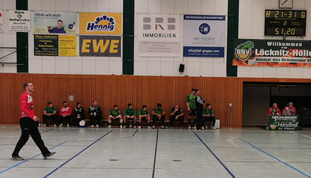 Grünheide (RH). Das war ernüchternd: Die Handballer des Grünheider SV I mussten sich am vorigen Samstag, 29. November 2025, im Heimspiel der Regionalliga Ostsee-Spree dem Ludwigsfelder HC deutlich mit 25:36 (14:21) geschlagen geben. Damit bleibt das Team um Chefcoach Tilo Leibrich, der auf der Bank vom neuen Co-Trainer Uwe Schwiderski unterstützt wird, mit nun 2:18 Punkten Letzter in der 14 Mannschaften umfassenden vierten Liga, die Ludwigsfelder (9:11 Zähler) festigen den achten Platz. Erfolgreichster Grünheider Werfer vor rund 150 Zuschauern, darunter viele Fans vom Ludwigsfelder HC, in der Löcknitz-Halle war Max Mißling mit sieben Treffern.