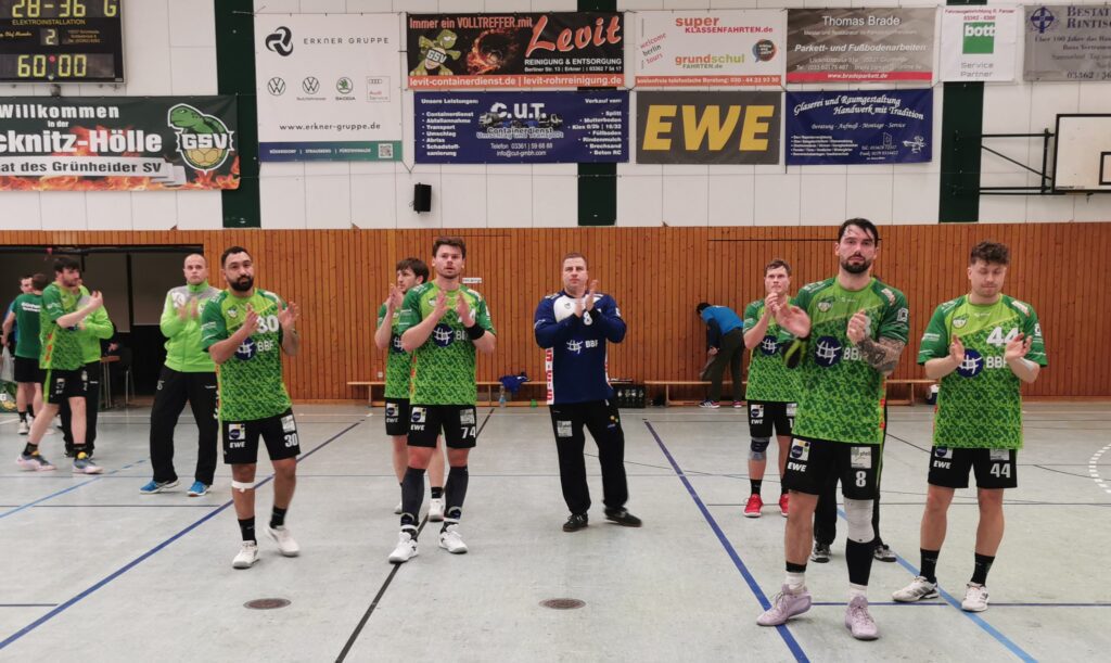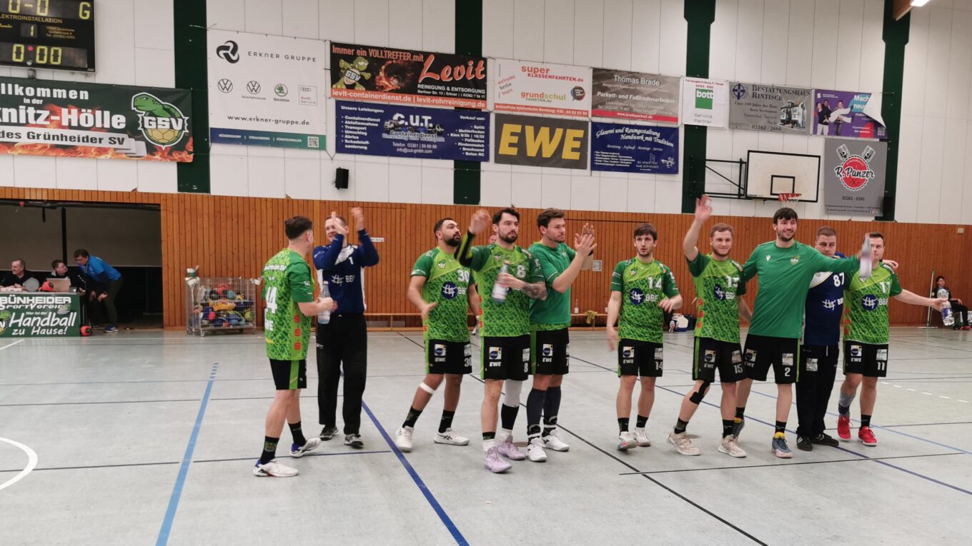 Grünheide (RH). Weiter warten auf Punkte: Die Männer des Grünheider SV I haben in der Regionalliga Ostsee-Spree eine Heimniederlage einstecken müssen. Das Team um Chefcoach Tilo Leibrich und Co-Trainer Uwe Schwiderski unterlag am vorigen Samstag, 14. Februar 2026, vor knapp 80 Zuschauern in der Löcknitz-Halle der SG Uni Greifswald/Loitz mit 28:36 (14:17). Beste GSV-Werfer waren Max Mißling mit sieben Toren und Oussama Boussama mit sechs Treffern. Das Hinspiel hatten die Grünheider mit 27:30 am 4. Oktober 2025 ebenfalls verloren. Die Greifswald/Loitzer sind jetzt Siebter mit 16:18 Punkten in der 14 Mannschaften umfassenden vierten Liga, der GSV weiter Schlusslicht mit nun 2:32 Zählern.
