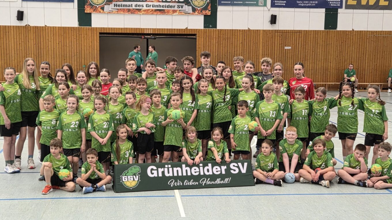 „Im Zuge des Anbaus an unsere nunmehr 24 Jahre alte Löcknitz-Halle wurden auch viele Sachen rekonstruiert beziehungsweise erneuert, wie zum Beispiel die Duschen und Wasserleitungen sowie Teile der elektrischen Anlage. So haben unsere Sportlerinnen und Sportler jetzt ein perfektes Umfeld für Training und Wettkampf, wenn bis zum Start der nächsten Saison Ende August/Anfang September alle Feinarbeiten erledigt sind. Das ist ein kleines Schlaraffenland, wenn ich an die Bedingungen in den nicht leichten Anfangszeiten und den Jahren danach denke“, sagt Ralf-Peter Fitzke. „Da gehört vor allem der Gemeinde Grünheide großer Dank für die jahrelange Unterstützung. Diese hat gute Früchte getragen“, fügt der 67-Jährige hinzu, der seit 1987 GSV-Chef ist, von 1982 bis 2015 die Sektion Handball führte und von 1966 bis zum September 2025 auch aktiver Handballer in Grünheide war. Und der Grünheider SV, der bei stabilen Beiträgen über einen „gesunden Haushalt“ verfüge, ist auch stolz über eine weitere Errungenschaft im Berichtsjahr: „Wir konnten dank der großzügigen Unterstützung des Elektro-Autobauers TESLA in Grünheide alle Kinder- und Jugend-Teams des GSV im Handball mit jeweils kompletten Spielkleidungen in Grün sowie in Schwarz ausrüsten“, sagt Ralf-Peter Fitzke. Da war die Freude beim Nachwuchs und im Verein natürlich riesig.